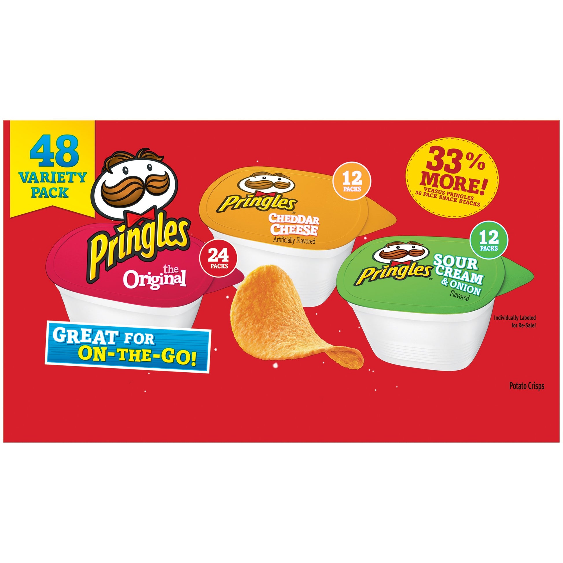 Details: Pop open your favorite flavor of chips with this Pringles Snack stacks variety pack! It comes with Original, Sour cream and onion and cheddar cheese flavors, so there is something for everybody.
