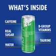 - One 8.4 fl oz can of Red Bull Green Edition energy drink contains 27 g of sugar, comparable to sugar levels found in apple juice