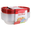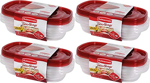 Details: Rubbermaid TakeAlongs Food Storage Container, Divided Dishes, Set of 12, 4-cup, Chili. New quick-click seal with an improved lid clicks in place, ensuring contents are secure. Ridged lids make for easier stacking. Easy-carry handles help prevent drops. Microwaveable, top-rack dishwasher safe and freezer safe. Clear containers make it easy to see what's inside. Made in the USA for nearly 80 years, Rubbermaid has represented innovative, high-quality products that help simplify life. Recognized as a “Brand of the Century” for its impact on the American way of life.