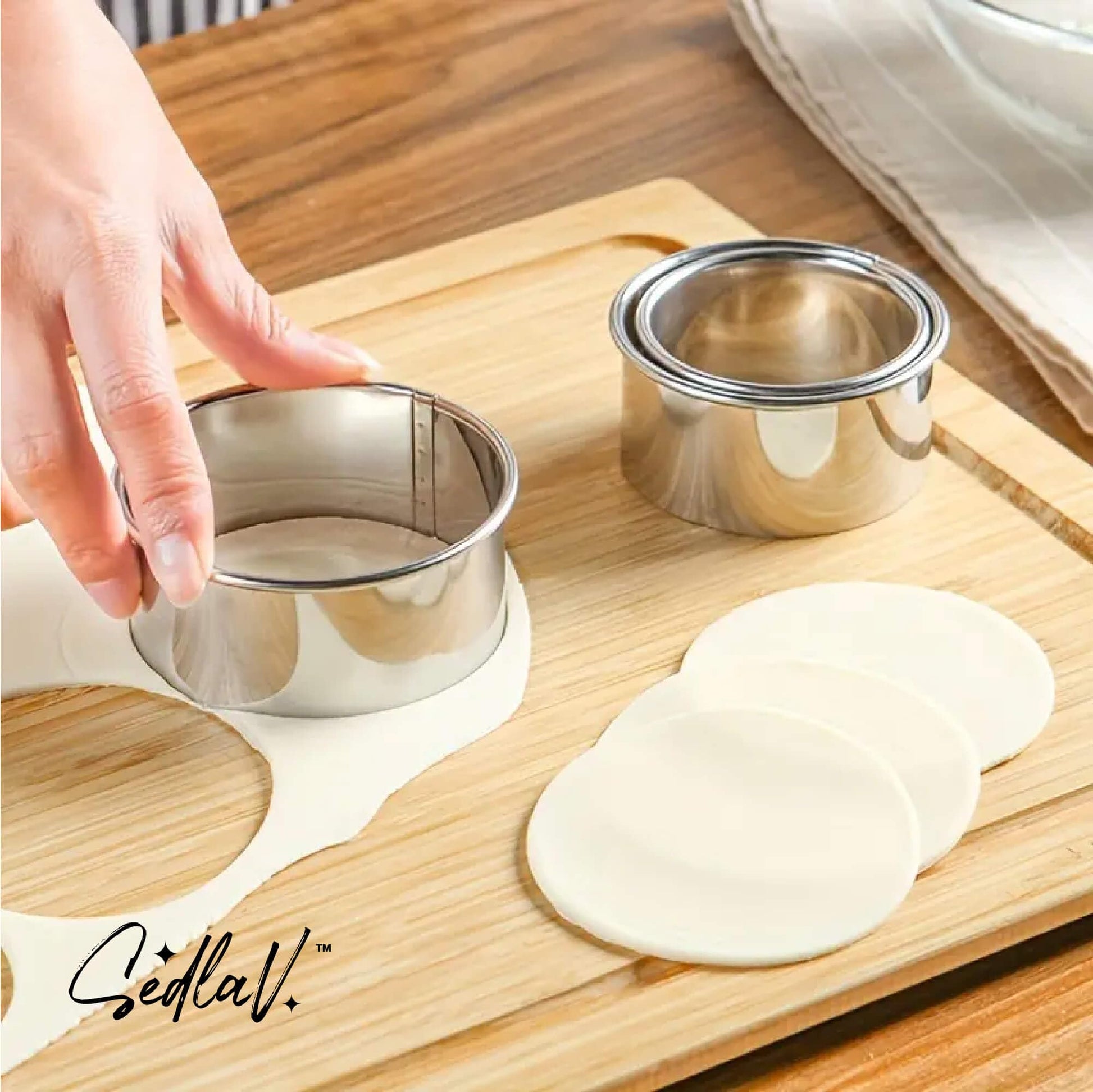 SEDLAV 3-Piece Stainless Steel Dumpling Skin Cutting Mould - Safe Rounded Design, Includes Dumpling Maker Press, Round Cookie Cutters, Biscuit Cutters for Baking and Dough Cutters