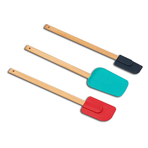 Color: Natural bamboo and Spatulas black, blue and red.