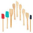 SEDLAV Kitchen Utensils Bamboo Set 9 pieces wood wooden tools with silicone spatulas for cooking