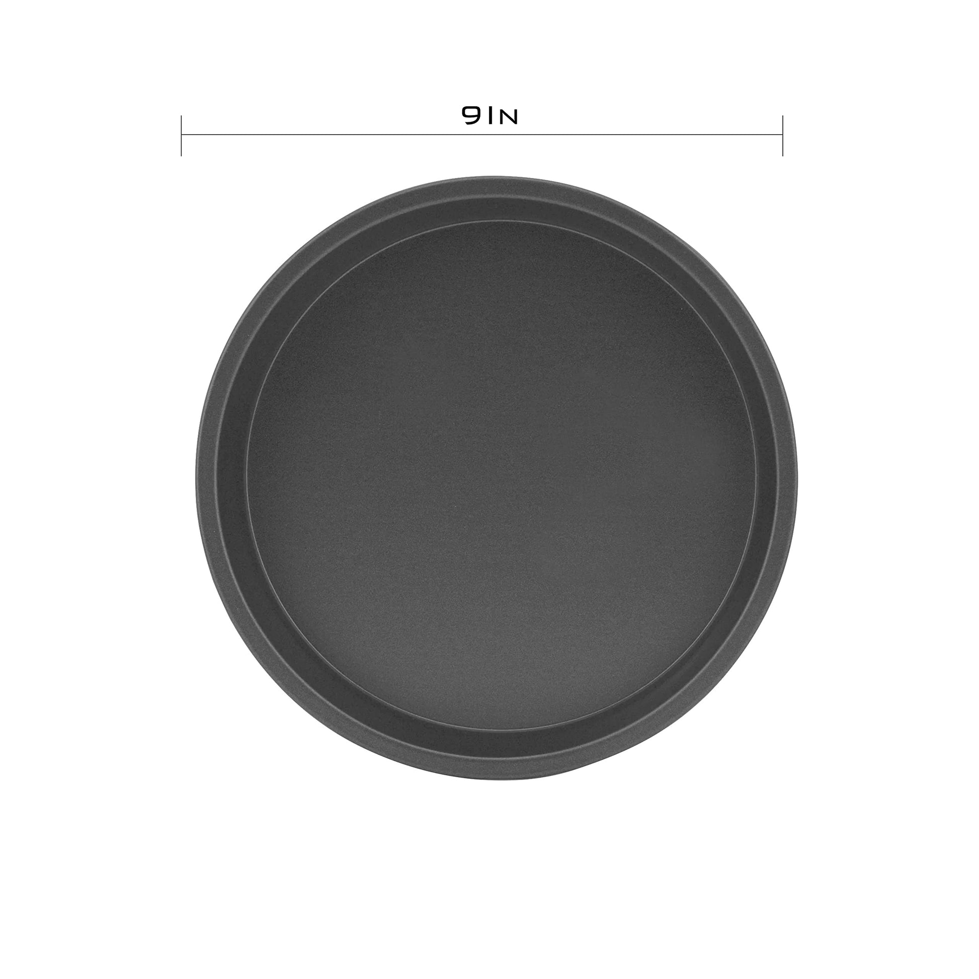 Details: The Round Cake Pan is 9 inches round and is ideal for making a variety of layers cakes, box cakes, cornbread, smash cakes, and more. It is made of dependable steel construction, so it heats up quickly and food will always bake uniformly with a consistent golden-brown finish every time. Don't need grease, cooking sprays, or paper liners.