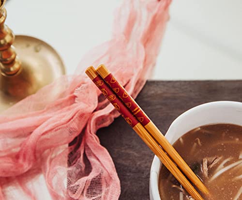 • TOOLS OF THE TRADE: Ramen set includes a pair of reusable wooden chopsticks with a matching design. Don't worry about dropping your utensils when hitting a bump. The bowl features built-in notches for resting your chopsticks during the train ride.