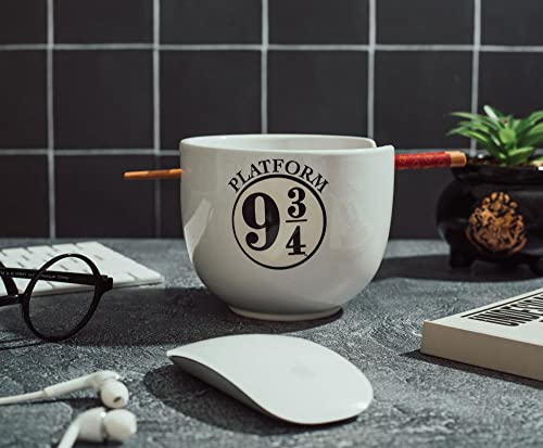 Silver Buffalo Harry Potter Platform 9 3/4 Dinnerware | 20-Ounce Ramen Bowl and Chopstick Set