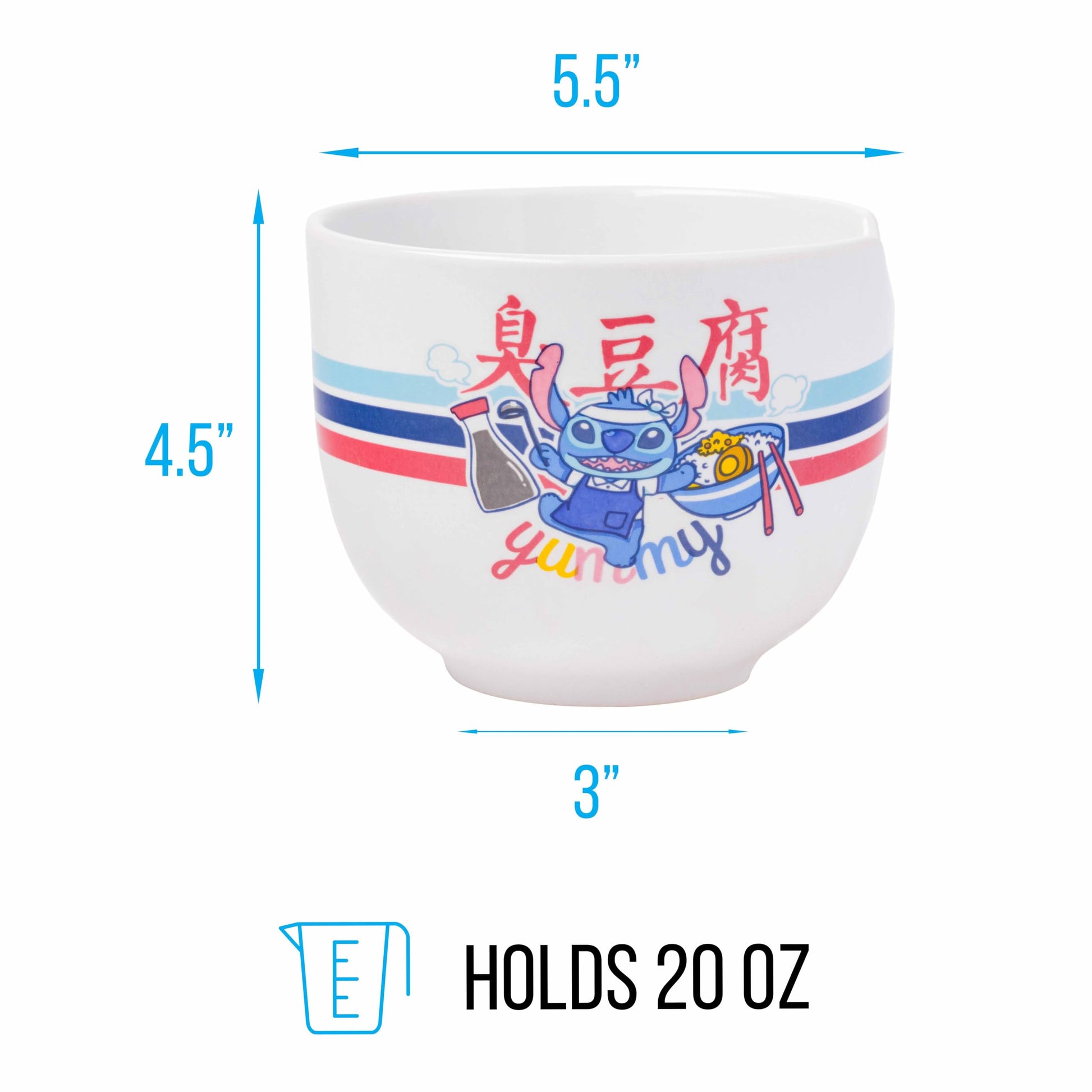Silver Buffalo Lilo and Stitch Yummy Ceramic Ramen Noodle Rice Bowl with Chopsticks, Microwave Safe, 20 Ounces