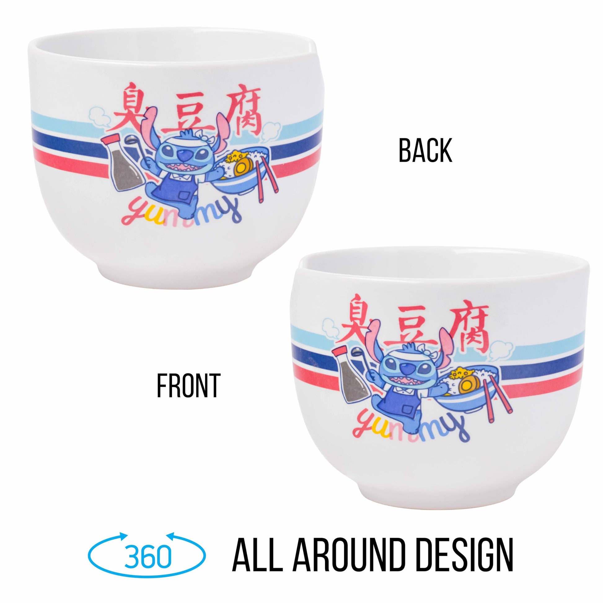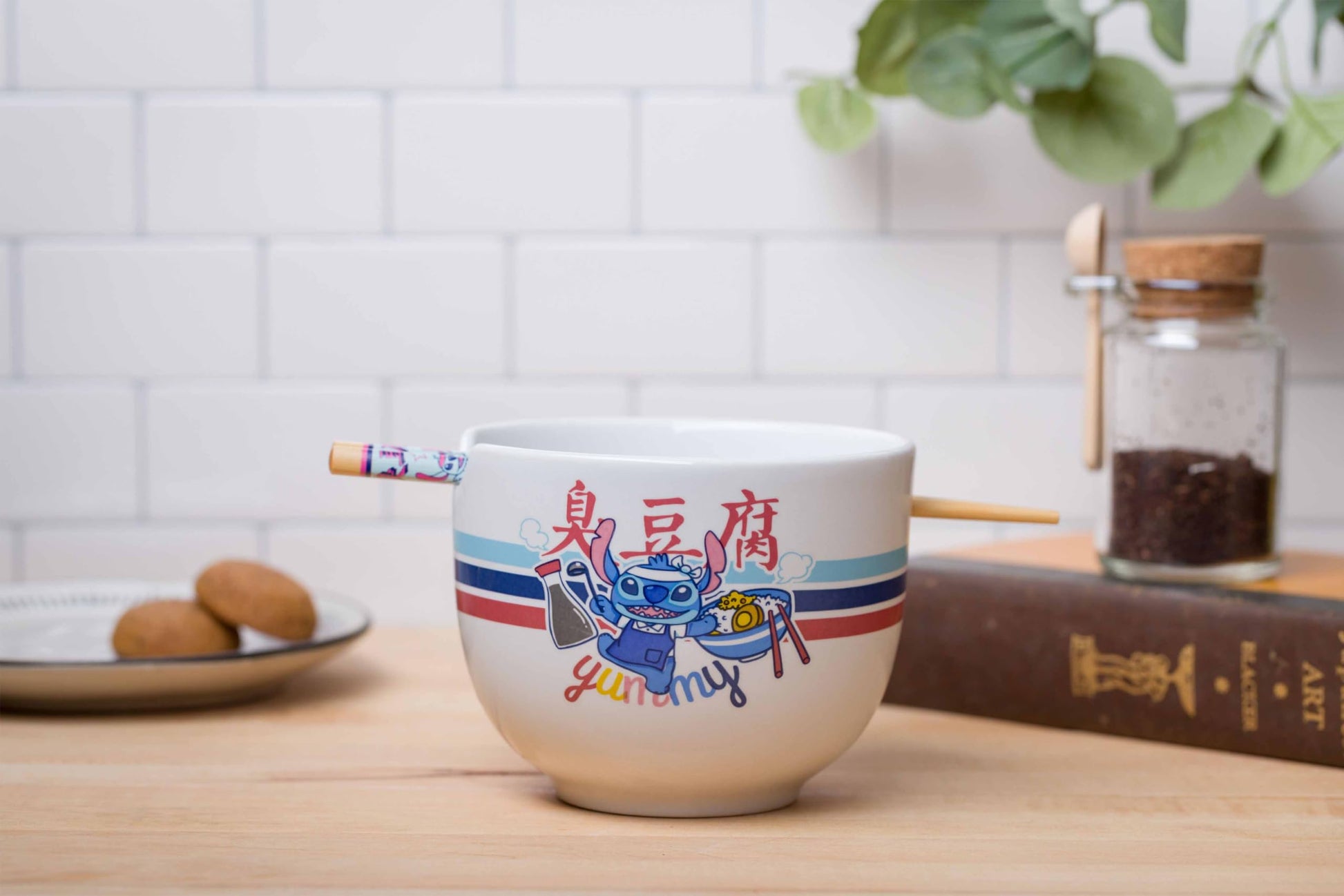 - LILO AND STITCH BOWL: Adorable ramen bowl features Disney’s Stitch dressed as a Japanese chef ready to serve up a bowl of rice with the words “Yummy” written across the bottom.