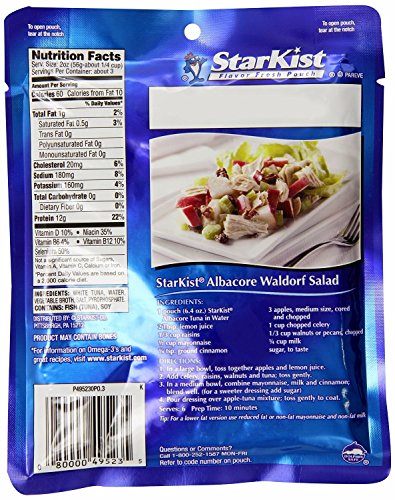 Details: Albacore’s mild flavor and firmer texture, hand packed in our Flavor Fresh Pouch, make it a great option for salads, pasta dishes or as a substitute for chicken in your favorite recipe. Because it’s no drain, you can even eat it right out of the pouch! Delicious tasting tuna you can really tear into! StarKist 6.4 oz StarKist Albacore Tuna in Water contains 130mg per serving of EPA and DHA Omega-3's combined, which is 81% of the 160mg Daily Value for a combination of EPA and DHA.