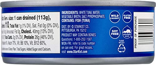 Details: Whether you’re squeezing in lunch between meetings during a busy workday or want a quick, protein-packed snack between soccer practice, school and other daily errands, StarKist Solid White Albacore Tuna in Water is the perfect choice! Each of our 5 oz. tuna cans are dolphin safe and contain a solid fillet of great tasting albacore tuna that is perfect for quick snacks or meals. Plus, it’s soy and gluten free and works well with Keto, Paleo, Mediterranean and Weight Watchers diet plans! This packaged tuna is an excellent, natural source of protein and Omega 3s, and it has 26g of protein and 110 calories per can. Plus, it’s a great, quick and easy way to add seafood to your diet! Easy to store, you can stock up with this 12-Pack of tuna cans, and keep these tuna cans in your office, pantry at home and even in your car! An industry innovator, StarKist was the first brand to introduce StarKist single-serve pouch products, which include Tuna, Salmon and Chicken Creations, and StarKist Selects E.V.O.O. As America’s favorite tuna*, StarKist represents a tradition of quality, consumer trust and a commitment to sustainability. *Nielsen Custom Scantrak Data xAOC Dollar Share Latest 52 Weeks