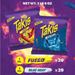Details: Mix-up how you snack with Takis Rolled Tortilla Chips and give your taste buds the gift of launching into an unexplored universe of sensational flavor combinations. We know hunger can strike at a moment's notice, creating a storm of emotion that distracts you from living in the moment. Which is why we set out to pioneer irresistible snacks that unleash tantalizing waves of flavor and deliver an unbeatable crunch in every single bite. These 40-pack boxes are perfect for parties, celebrations, holidays, backyard get-togethers, and restocking the pantry. Plus, these 1oz bags are labeled for individual sale. Our variety pack contains two of our most popular flavors and makes quick work of not only extinguishing your own hunger, but theyâre also a great food for sharing with friends and family. Fuego gives you the taste of zesty hot chili pepper and lime while Blue Heat lets loose a hot chili pepper flavorâboth artificially flavored. Share a snack with your squad and transform a low-key hangout into a delicious celebration or turn the vibes up to ten on your next road trip when you bring Takis Rolled Tortilla Chips. Try all our supercharged Takis' family of snacks and experience for yourself how our snacks give your senses a first-class ticket out of this worldâchanging the way you feast on flavor forever. Are you ready to taste the intensity?