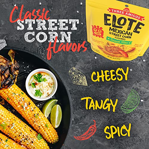 Three Amigos - Elote Mexican Street Corn Snack Mix- Deliciously Crunchy, Tangy, Hot, Sweet & Spicy Snacks - Gourmet Roasted Variety Food Snacks for Adults and Kids (Elote 30 oz)