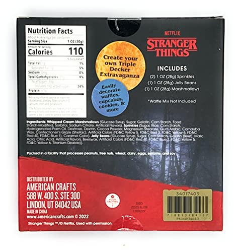 Details: Create your own Triple Decker Extravaganza! Easily decorate waffles, cupcakes, cookies, and more! Kit includes 1oz marshmallows, 2oz sprinkles, 1oz jelly beans. Waffle mix not included.