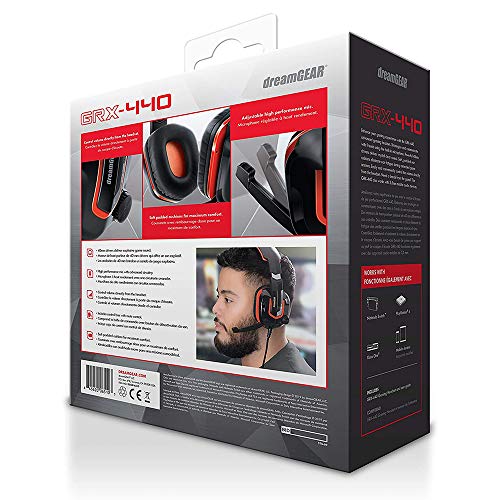 dreamGEAR Grx-440 - Wired Gaming Headset for Nintendo Switch - Nintendo Switch Lite/Switch/PS4/Xbox One/PC, Black/Red