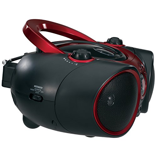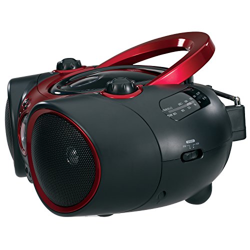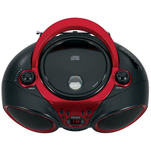 JENSEN CD-490 Portable Stereo CD Player with AM/FM Radio and Aux Line-In, Red and Black