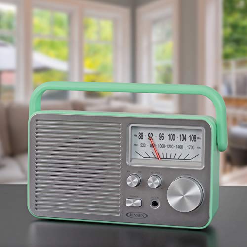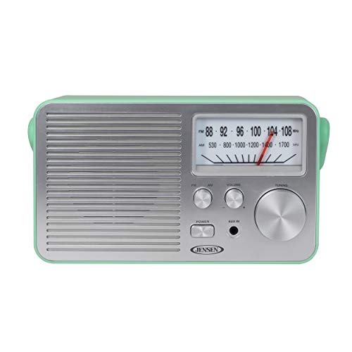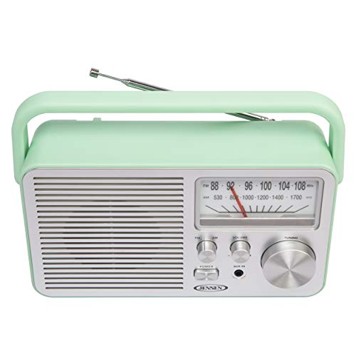 Details: Never miss your favorite game, listening to your favorite radio station, or catching up on the latest news with this JENSEN MR-750 Portable AM/FM Radio. The stylish Green radio can go anywhere you go and you'll find its large analog tuning dial makes setting your favorite station a breeze. You can also play music from an MP3 or other digital media player using the front mounted aux input jack. The MR-750 also includes a built-in speaker, folding handle, and FM antenna. The unit operates on 120-volt AC power or on 4 C batteries (sold separately).