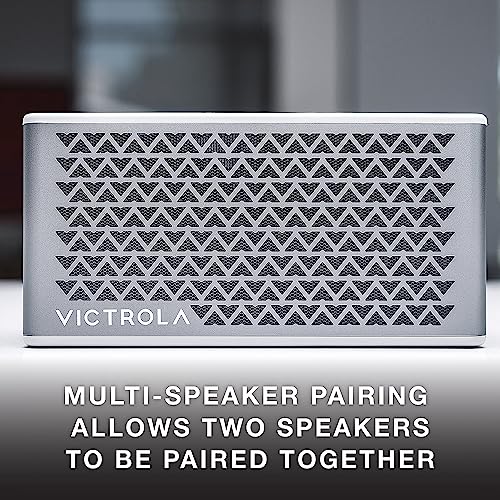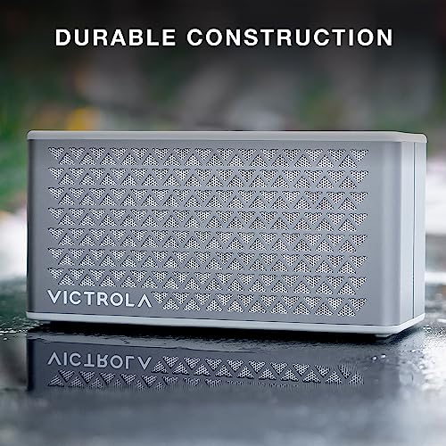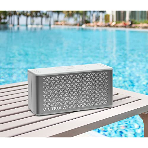 Victrola Music Edition 2 Tabletop Bluetooth Speaker, IP67 Water and Dust Resistant, 20 Hour Battery Life, Multi-Speaker Pairing, Premium Sound and Passive Bass Radiator, Silver