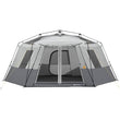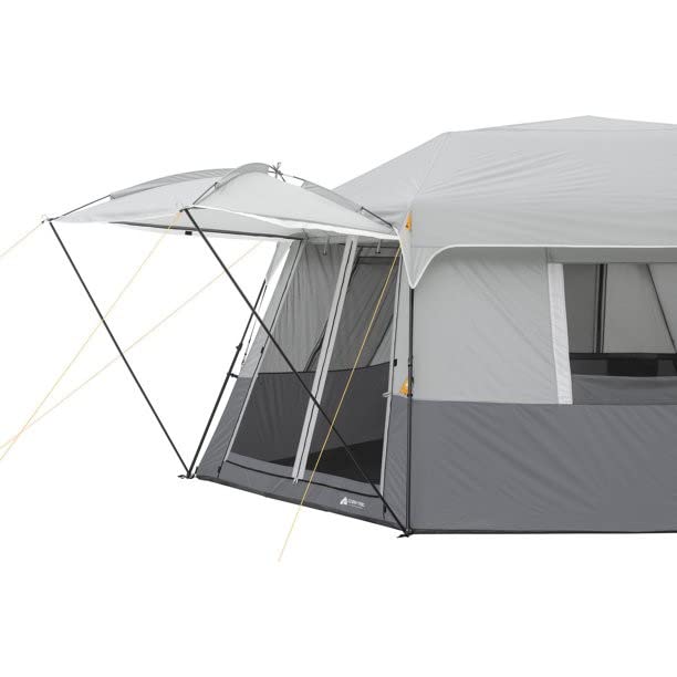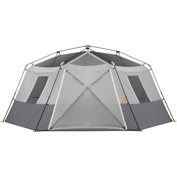 Details: This 11-Person Instant Hexagon Cabin Tent is the perfect tent to take with you on your next outdoor adventure. The innovative instant steel frame allows this tent to be set up in under two minutes for a fun and easy camping experience. This 255 square foot, 11-person instant tent requires no assembly because the poles are pre-attached to the tent, just unfold and extend. Enjoy the panoramic views with the extra-large windows, front and rear doors, and a shade porch. It will comfortably fit two queen air beds or up to 11 campers in sleeping bags on the floor. Keep yourself organized and connected with the included two storage pockets, gear loft and electrical cord access. Included are sixteen steel tent stakes to secure the tent and a tent carry bag for easy portability and storage. Make camping easy and enjoyable with the 11-Person Instant Hexagon Cabin Tent. Take this tent with you on your next outdoor adventure.