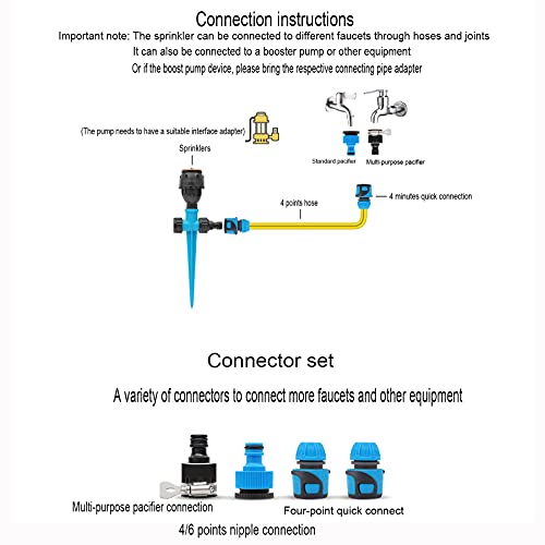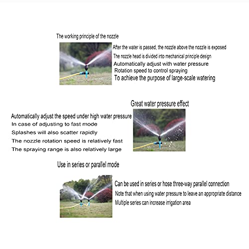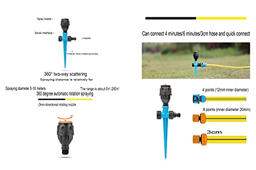- Spray angle: The sprinkler garden sprinkler system has an adjustable nozzle that allows you to change different sprinkling modes to meet your different spray needs. Perform a larger watering area.