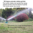 - Easy to use and quick installation: connect the water tap to the port and click. 360 degree rotating spray, no other auxiliary power device needed. Automatic watering of garden/lawn can only be achieved by household water supply pressure.