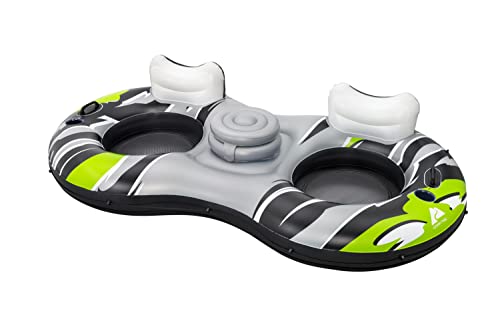 Details: Product details The Ozark Trail® Adult Unisex Rapid Rider⢠II Double Tube means relaxing fun in the sun and on the water with friends and family. The Rapid Rider Inflatable Tube seats two and sports superior features. It is constructed with Inflata-Shield⢠puncture resistant material that also limits stretching and enhances grip. The 2 built-in cup holders keep your favorite beverages and snacks close by at all times. The tube also features two backrests so you can enjoy your river float in maximum comfort. The premium mesh bottom allows the water to keep you cool as you have fun under the sun. An attached grab rope provides extra safety and ease when docking. Size: 98 in. x 53 in. / 2.51 m x 1.35 m Inflata-Shield⢠material resists puncture, limits stretching and enhances grip Double tube seats 2 people Float comfortably with 2 built-in backrests and cool mesh bottoms 2 cup holders and built-in cooler Interlocking quick release valves for easy inflation and deflation Contents: 1 tube, 1 cooler bag, 1 repair patch