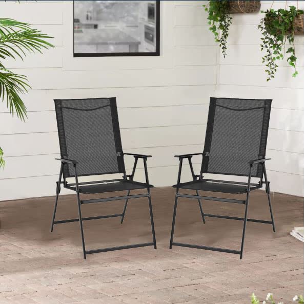 SEDLAV Greyson Square Set of 2 Outdoor Patio Steel Sling Folding Chair (Black)