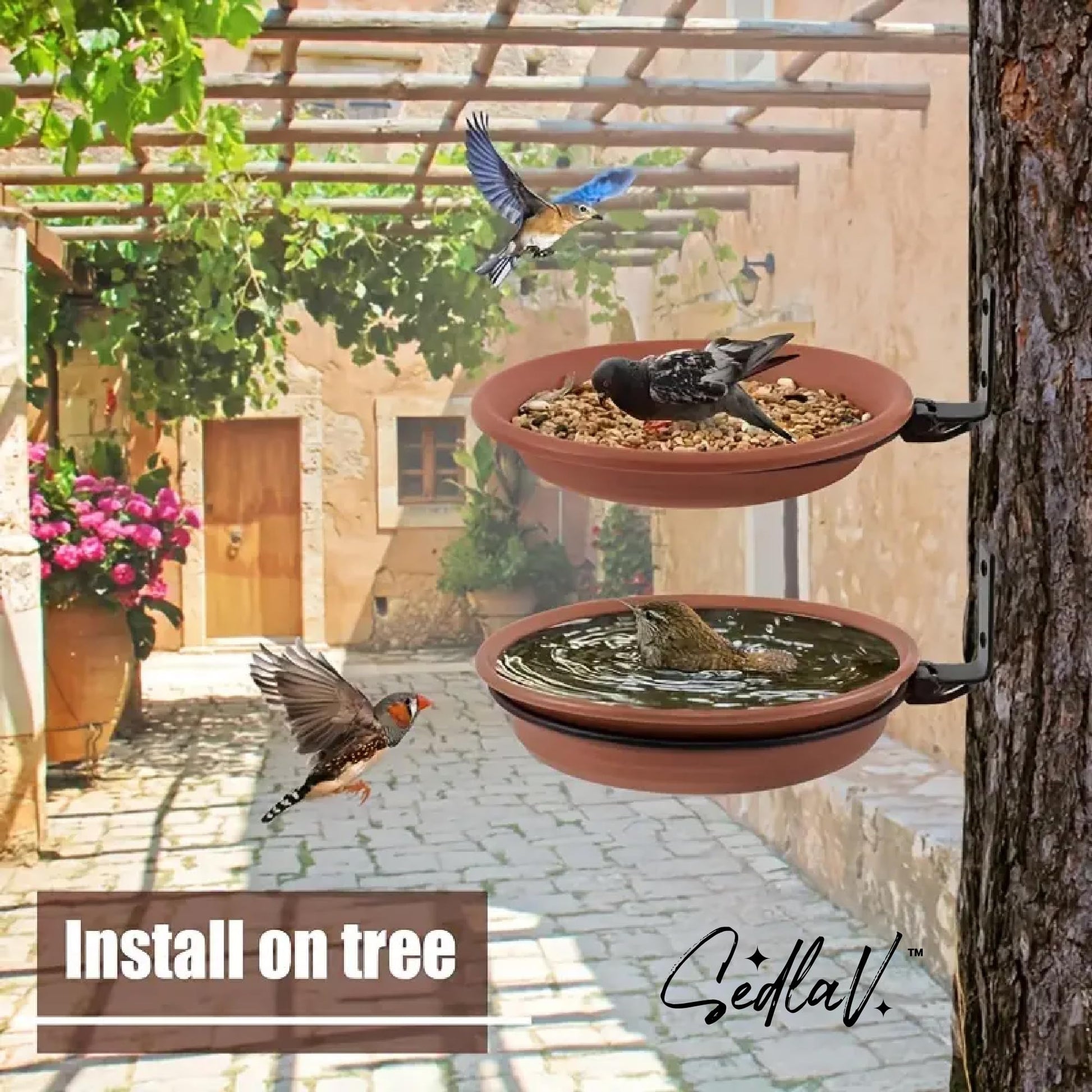 SEDLAV Tray Bird Feeder & Bird Bath Garden Set PP Resin w/Enhanced Durability - Weather Resistant & Easy-to-Clean - Dual Feeding & Drinking Trays for Birds, Foldable Design