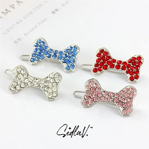 SEDLAV 4 Pcs Pet Rhinestone Hair Clips - Cute and Stylish Pet Hair Accessories for Cats and Dogs Crystal Dog Hair Barrettes in Clear, Pink, Blue, and Red
