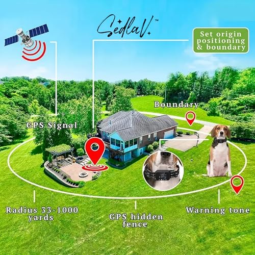 SEDLAV GPS Wireless Dog Fence Collars - Adjustable, Rechargeable & Waterproof with LED Touch Screen, Magnetic Charge Port - Over 40 Satellites for Great Accuracy, No Wires or Flags Needed