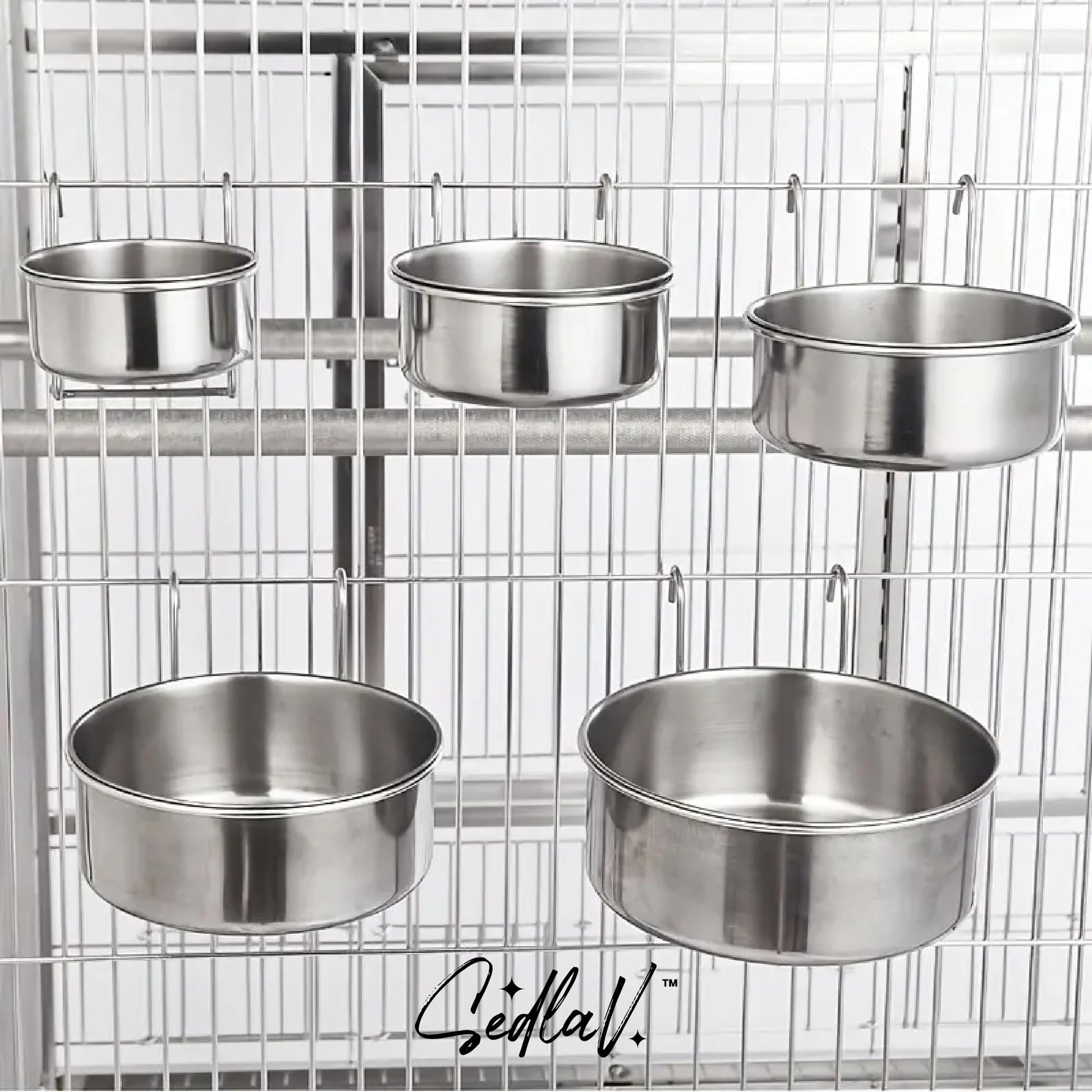 SEDLAV Premium Stainless Steel Bird Bowls - Hanging, Fixed, and Clamp-On Options for Parrots, Chickens, Pigeons, and Small Animals - Durable Metal Feeders and Water Bowls for Bird Supplies