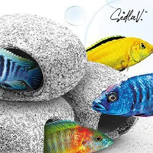 SEDLAV Resin Cichlids Rock Decor - Stackable Aquarium Stone Cave and Hideaway Decoration with Fish Breeding Cave - Ideal Betta Fish Tank Accessories and Live Pleco Habitat