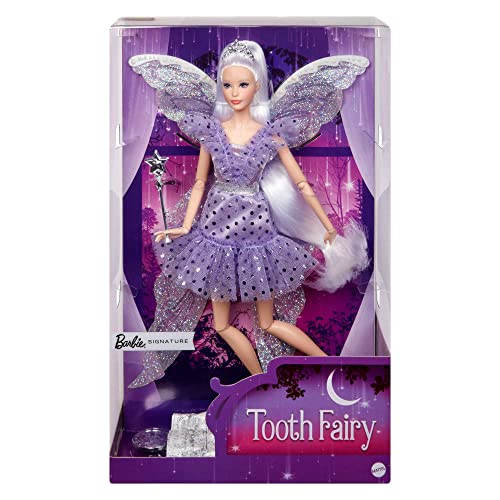 Barbie Signature Tooth Fairy Doll, Collectible Doll with Fairy Wings, Wand & Coin Bag, Gift for 6 Year Olds & Up, HBY16
