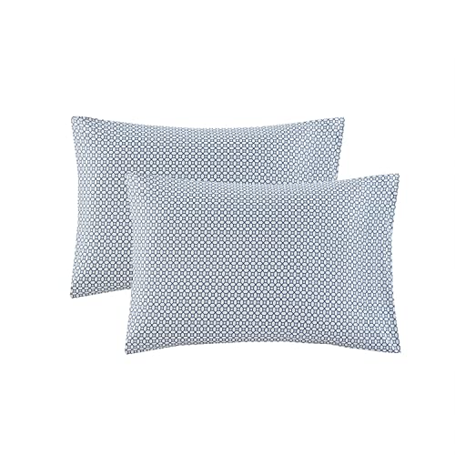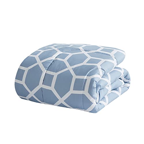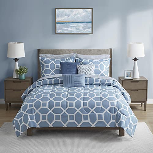Details: Give your bedroom a bold and fresh look with this bedding set. This silky, soft sheet offer a restful sleeping experience submerged in luxurious fabrics and colors. Give your bedroom the attention that it deserves with this bedding set. This bedding set enhance the beauty and functionality of your bedroom.FeaturesPattern: NoraMaterial: microfiber print (moisture-wicking treatment), microfiber solid reverse, Comforter fill: poly fill; Channel Quilting. Sheets : microfiber print (moisture-wicking treatment). Pillow: microfiber cover with poly fillColor: BlueProduct Size: Queen:88x92"/20x26"(2)/90x102"/60x80+13"/20x32"(2)/14x14"/12x16"/16x16"Made In China