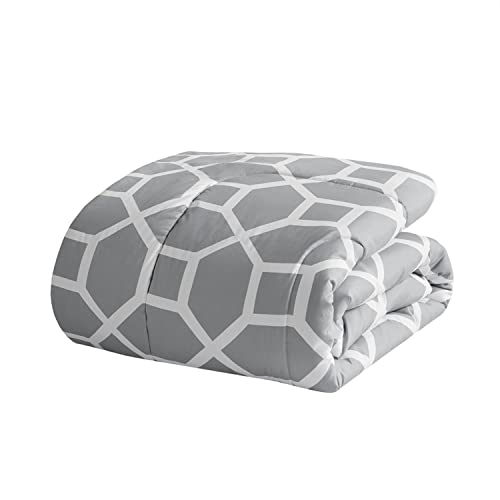 Details: Description Give your bedroom a bold and fresh look with this bedding set. This silky, soft sheet offer a restful sleeping experience submerged in luxurious fabrics and colors. Give your bedroom the attention that it deserves with this bedding set. This bedding set enhance the beauty and functionality of your bedroom.FeaturesPattern: NoraMaterial: microfiber print (moisture-wicking treatment), microfiber solid reverse, Comforter fill: poly fill; Channel Quilting. Sheets : microfiber print (moisture-wicking treatment). Pillow: microfiber cover with poly fillColor: GreyProduct Size: Queen:88x92"/20x26"(2)/90x102"/60x80+13"/20x32"(2)/14x14"/12x16"/16x16"Made In China