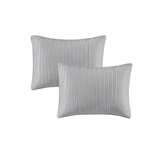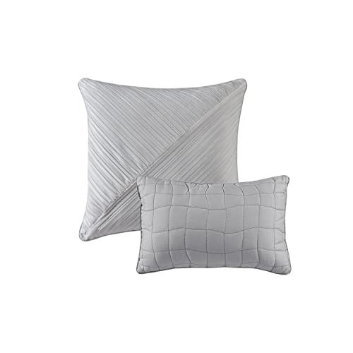 Details: Give your bedroom a bold and fresh look with this bedding set. This silky, soft sheet offer a restful sleeping experience submerged in luxurious fabrics and colors. Give your bedroom the attention that it deserves with this bedding set. This bedding set enhance the beauty and functionality of your bedroom.FeaturesPattern: JasperMaterial: 100% polyester solid crinkle textured velvet, reverse: 100% polyester microfiber solid, poly fill, hidden bartacks. Pillow: 100% polyester cover with poly fillColor: GreyProduct Size: Full/Queen: 92x96"/20x26"(2)/18x18"/12x18"Made In China