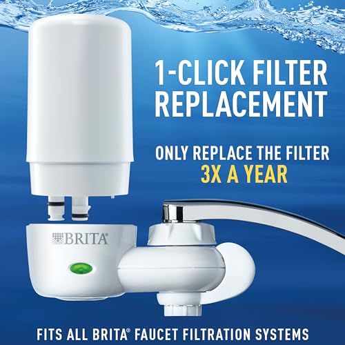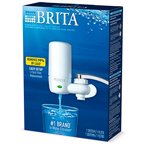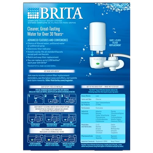 Brita Complete On Tap Faucet Water Filtration System filters out odors and impurities for healthier, great tasting water in a sleek white finish. Brita is the worlds #1 brand of water filtration. This complete faucet mount removes 99% of lead and reduces chlorine (taste and odor) and asbestos contaminants* commonly found in tap water It features an extra layer to trap sediments and smaller contaminates. One Brita water filter can provide up to 100 gallons of filtered tap water, replacing over 750 standard 16.9 oz. plastic water bottles, which cuts down on waste and saves money. This certified Brita water filter system attaches directly to standard faucets in five easy steps and includes a built-in filter indicator to signal the need for replacement after approximately 100 gallons or 4 months, whichever comes first. This model does not fit pull-out or spray style faucets. Get better taste on tap with the Brita White On Tap Faucet Water Filter System. *vs tap; **16.9 oz water bottle