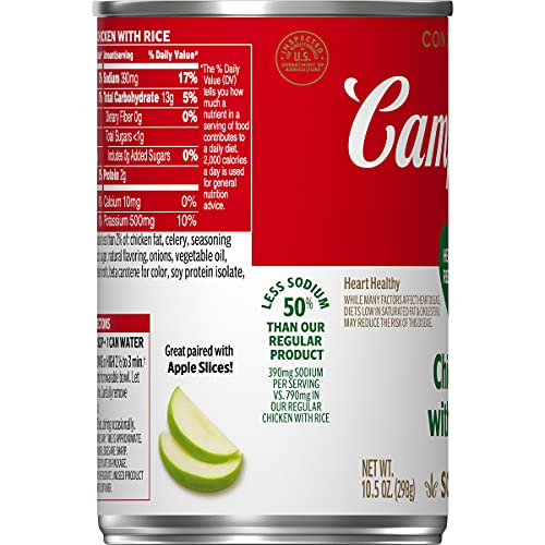 Details: Comfort your soul with our savory bowls of Campbell’s Condensed Healthy Request Chicken with Rice Soup. Our low-fat spoonfuls burst with the wholesome flavors of rice, chicken meat, and veggies. Even better, you’ll feel good that every bowl features a good source of Vitamin A. M'm! M'm! Good!…For Your Heart!