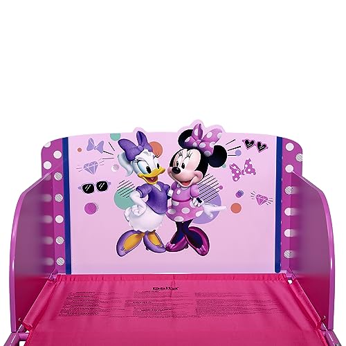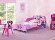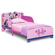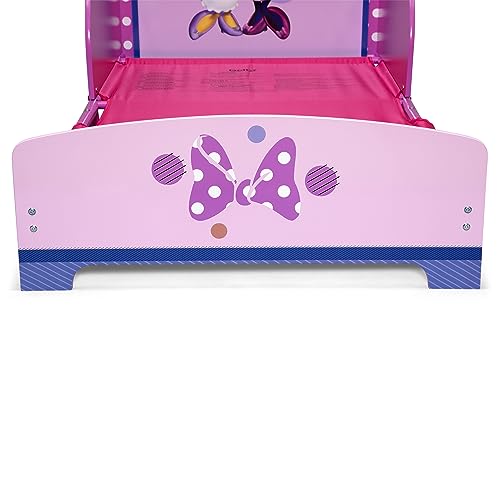 Details: The playful Disney Minnie Mouse Wood & Metal Toddler Bed by Delta Children is designed to deliver pleasant dreams. Adorned with colorful graphics of Minnie and her friends, this sturdy wooden toddler bed with metal and fabric mattress support will help your little one easily transition to a "big kid" bed. The bed features two attached guardrails and is the perfect kid-sized height, which allows your child to get in and out on their own.