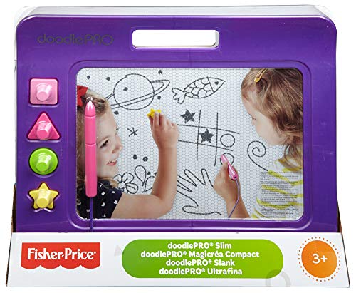 The Doodle Pro Slim offers hours of classic mess-free drawing, doodling and stamping fun in a sleek new design! The attached screen saver pen, four easy to use shape stampers and extra-large magnetic drawing screen gives little ones the big confidence they need when drawing and doodling. Plus, the easy-slide eraser magically cleans the screen so they can draw up new creations over & over again!