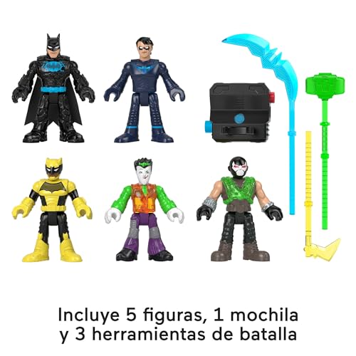 Details: The battle for Gotham City gets lit with the Imaginext DC Super Friends Bat-Tech Multi-Pack from Fisher-Price. This action-Packed figure set features 5 poseable Super Hero and Super-Villain figures, each with a unique clear chest. Kids can attach the light-up backpack to a figure and one of the 3 accessories then press the button to see everything light up with awesome glowing power! Use the backpack with any Imaginext DC Super Friends figure with a clear chest to see it light up! (Additional figures sold separately and subject to availability.)