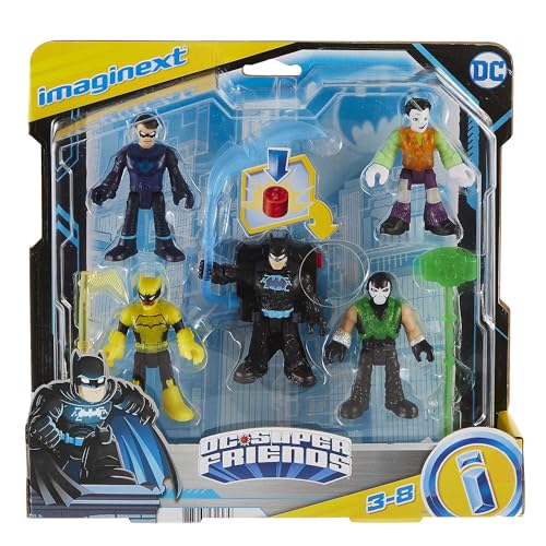 Fisher-Price Imaginext DC Super Friends Bat-Tech Multi-Pack, set of 5 poseable figures with clear light-up chests for kids ages 3 to 8 years