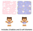 - Each baby figure has its own soft, snuggly blanket with a cute pattern