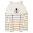 - Ivory towel features oatmeal colored bear face on hood and stripes on towel