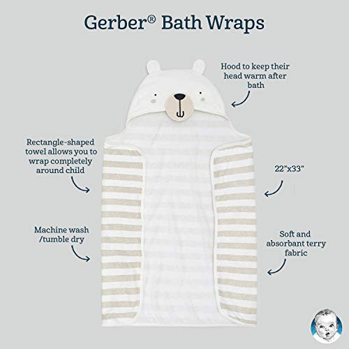 Gerber Baby Hooded Bath Wrap, Teddy Bear (Oatmeal), One Size