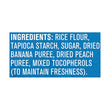 Details: Flavor:Banana Peach Gerber Teethers are made to gently massage tender gums and are perfectly shaped for little ones to grasp on their own. This teething snack is made with no artificial colors, flavors or sweeteners