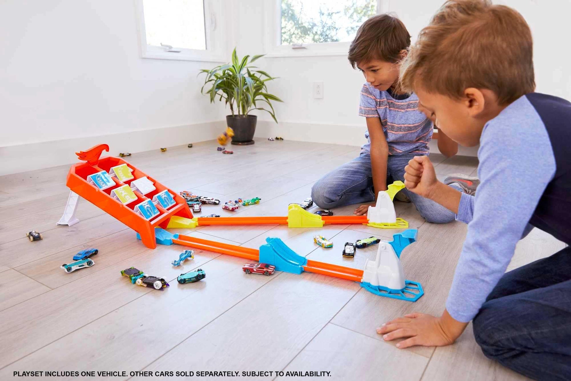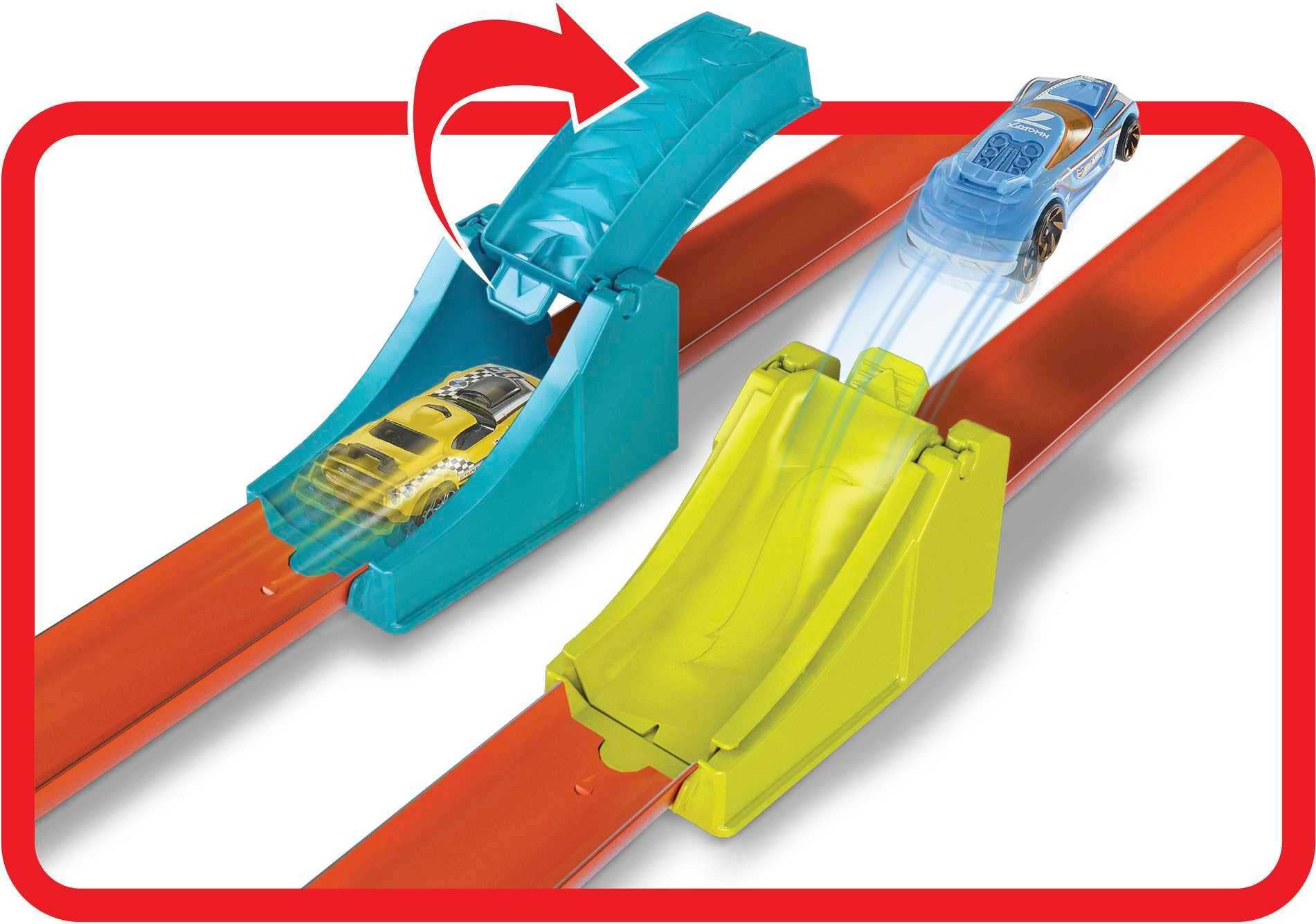 • Gamified Hot Wheels play set with 2 tracks, 2 launchers, 2 ramps and lots of ways to play!