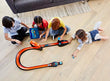 • The more kids play with the physical cars and track, the more they level up in the video game, challenging them to break records they make on smart track.