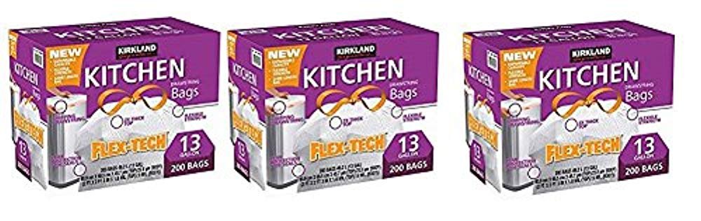 Kirkland Signature Drawstring Kitchen Trash Bags - 13 Gallon - 200 Count (3 Packs of 200 Bags)