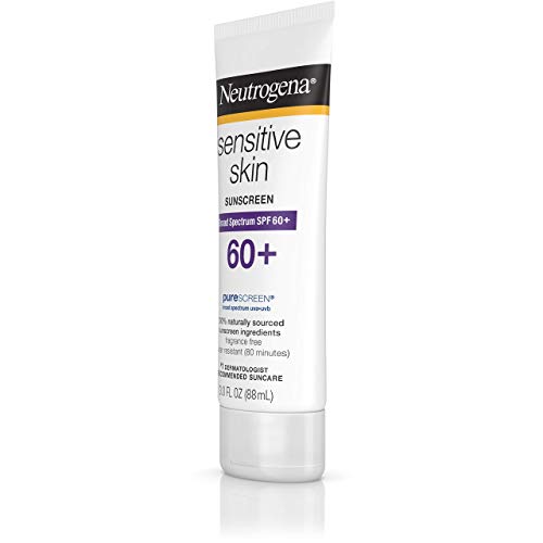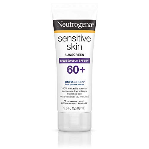 Details: Help protect your sensitive skin and prevent sunburn with Neutrogena Sensitive Skin Sunscreen Lotion with Broad Spectrum SPF 60+. Specially formulated for sensitive skin, this gentle sunscreen provides protection from damaging UVA and UVB rays to help prevent sunburn. Its unique formula features Purescreen technology made with 100% naturally sourced physical sunscreen ingredients, including titanium dioxide and zinc oxide. This unique mineral sunscreen is hypoallergenic and free of fragrances and oils that may irritate sensitive skin. From the #1 dermatologist recommended suncare brand, our sunscreen lotion provides water-resistant protection for up to 80 minutes.
