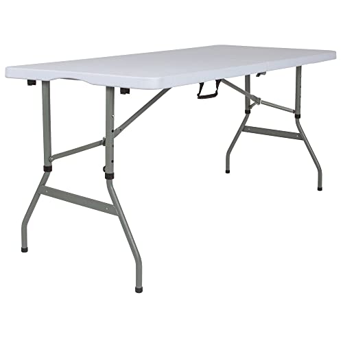 SEDLAV 5-Foot Height Adjustable Bi-Fold Granite White Plastic Banquet and Event Folding Table with Carrying Handle