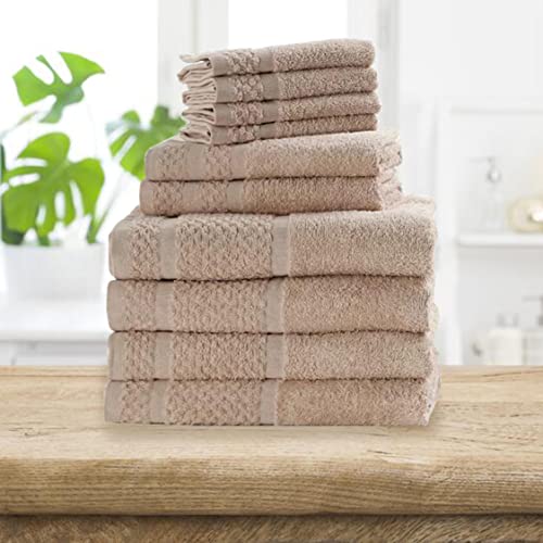 SEDLAV Bath Towel Set with Upgraded Softness & Durability, 100% Cotton (10 Pack) (Beige)